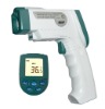 Infrared Thermometer 1. Safe and Precise non-contact measurements 2. ºC / ºF selectable oC or ºC 3. (0 50 ºC)/ (-20 150 ºC) Selectable Body temperature (0 50 ºC)/ Surface temperature (-20 150 ºC) 4. Set Alarm value 5. User can calibration by self 6. Set for measure different skin color 7. Automatic Data Hold & Auto power off 8. LCD Backlight LCD display 9. Flash Light 10. Laser pointer Basic function Range Temperature Range 3050 Accuracy ±0.5 Emissivity 0.95 Resolution 0.1 Response Time 500ms Repeatability 1% or 1 Date Hold √ Back Light √ Flashlight √ Auto Power Off √ / / √ General Features Battery Type 9V(6F22)x1 Dimension 146×80×38mm Weight 130g MOQ 100 Ctn Size 530x310x400mm Q'TY / Ctn 40 / GW/NW 15/14Kg